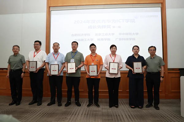 2025年7月15日,华为ICT人才开展专项委员会年中工作会议于贵州华为云上屯园区举行。会上,蚌埠学院联合华为技术有限公司、深圳市威九国际技术股份有限公司共建的华为ICT学院,荣获“2024年度优秀华为ICT学院成长先锋奖”。该奖项聚焦ICT学院的快速成长与长期耕耘,表彰在课程学习量、认证体系、教学资源、赛事融入、人才双选等关键领域取得突破的高校。